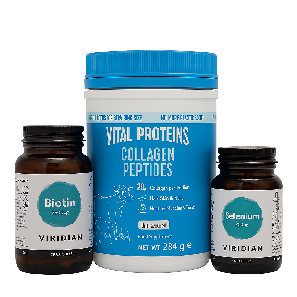 Glowing skin, strong nails, healthy hair - this pack works at the cellular level. Collagen hydrates, biotin strengthens, selenium protects.